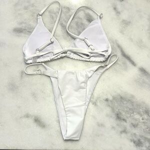 NWOT Triangle Tie Back Top and High Cut Leg Bottom Swim Bikini 2Piece Set White Large by Berry Beach