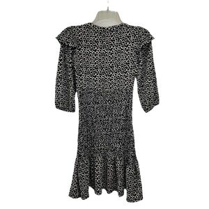 This NWOT Bershka Floral Day Dress is a stylish juniors' medium-sized mini dress with 3/4 puff sleeves and a round neckline. The dress features a black and white floral pattern, made from a comfortable polyester and elastane blend fabric with a stretchy elastic closure. Perfect for travel, parties, or casual occasions in all seasons, this dress by Bershka is a trendy addition to any young woman's wardrobe.