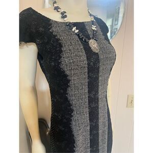 NWOT? Betsey Johnson Black Tweed & Lace Ultra Flattering Cap Sleeve Sheath 6