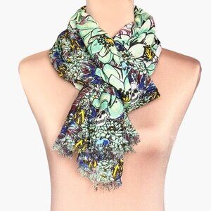 NWOT Betsey Johnson Large Printed Scarf Multi Lotus Skull Feather Grunge Punk