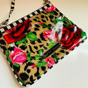 NWOT Betsey Johnson Rose/Leopard/Striped Wristlet