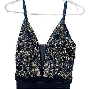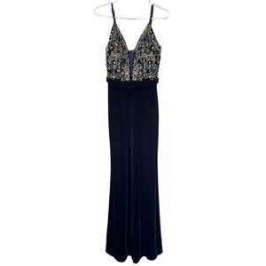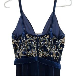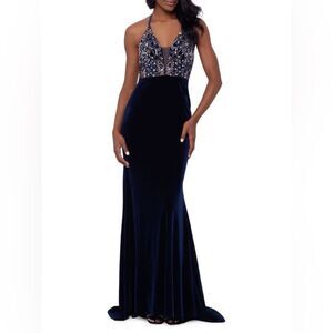 NWOT Betsy & Adam | Velvet Navy Embellished Strappy Evening Gown 4
