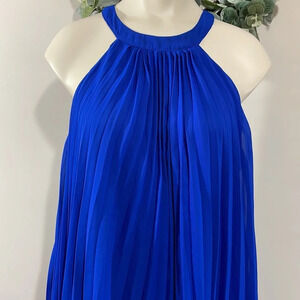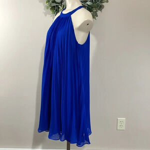 NWOT Betsy Johnson Chiffon Pleated Halter A-line Swing Dress Royal Blue 10