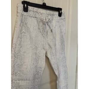 NWOT Bevy Flog Shely High Rise Drawstring Pants White Python Snake Print 27