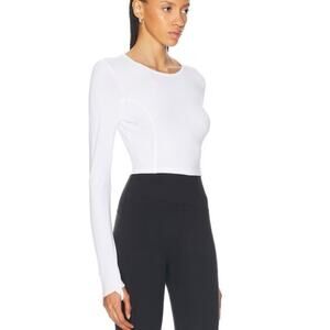 NWOT Beyond Yoga Powerbeyond Lite Air Shield Crop Long Sleeve Top in White SZ S