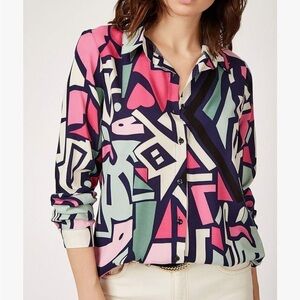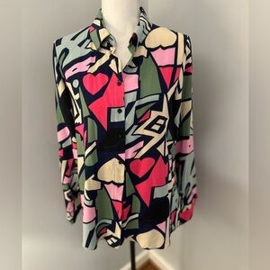 NWOT Big Dart 80s Inspired Art Deco Pop Art Button Up Long Sleeve Shirt Size M
