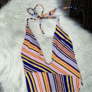 NWOT Bikini Lab Striped One Piece Swimsuit Medium Plunging neckline NWOT and no flaws Removable padding is not included Ties at neck