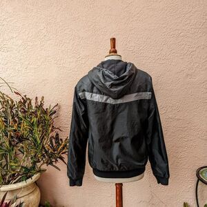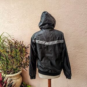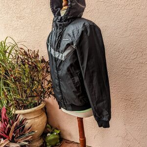 Billabong Graphic Logo Print Zip-up, tie string hooded jacket in black with a gray stripe.