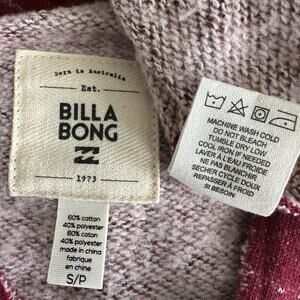 NWOT Billabong Hoodie Pullover Sweatshirt Small Burgundy Beige Stripe Fleece