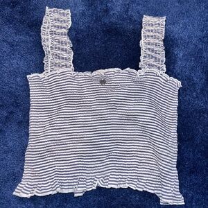 Never worn Billabong tank top, Size M. Navy blue and white stripes, thick strap, front scrunch.