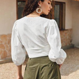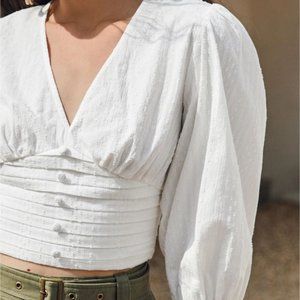NWOT Bishop Sleeves Covered Buttons Cropped Top S/4