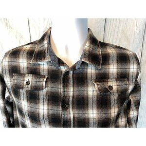 NWOT Bixby Nomad Boys XL 16-18 Long Sleeve Brown Black Plaid Button Down Shirt