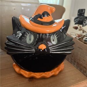 NWOT Black Cat Ceramic Candy Dish Halloween Home Decor