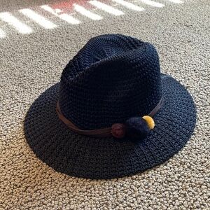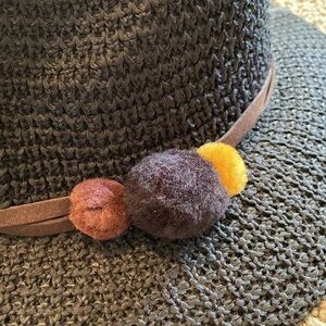 Lovely hat with Pom Poms and rhinestone heart in the back. Super cute!
