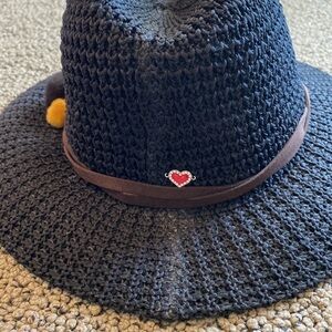 NWOT Black Embellished Fedora Hat w/ Red Heart