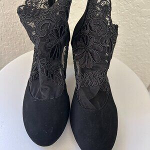 NWOT Black Embroidered Mesh Bootie