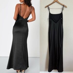 NWOT Black Satin Backless Mermaid Maxi Dress
