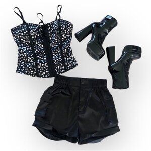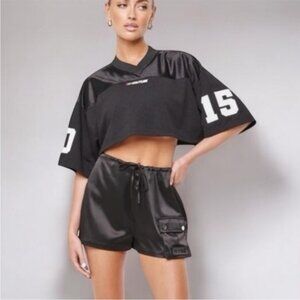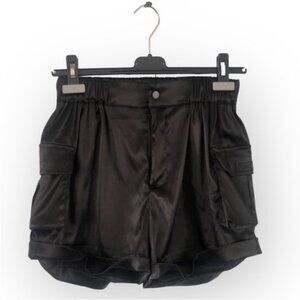 NWOT Black Satin Cuffed Cargo Shorts
