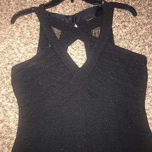 Never worn, but missing tags. Black Sparkle Juniors Bodycon Dress. Size 11. Fits tight to body. Bottoms and zipper in back. Back has mesh see through sections on each side. Super cute for a night out!