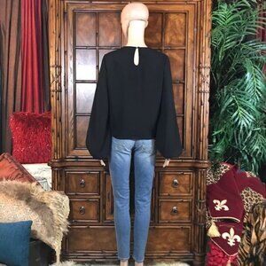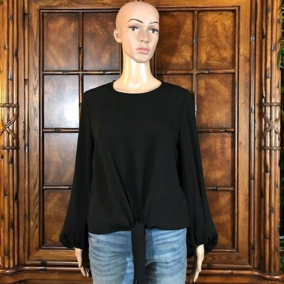 NWOT Black Tie Front Blouson Sleeve Keyhole Neck Top