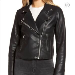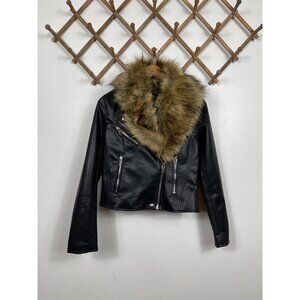 NWOT BlankNYC Night Fever Faux Leather Moto Jacket removable Faux Fur Collar XS