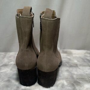 NWOT Blondo Sonali Waterproof Suede Boots Size 8 Taupe Zip Up Block Heel
