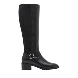 A buckle strap at the ankle adds a sophisticated flourish to an essential knee-high boot that's also waterproof.
