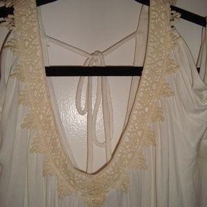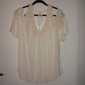 cream color blouse w/crochet detail on v neck and arms