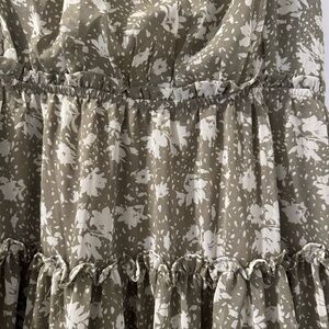 New without tags green floral dress. Size medium. Layered ruffle effect. Lightweight. 0009