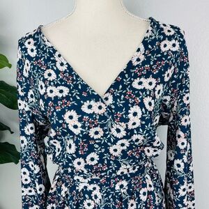 NWOT Blue Floral Long Sleeve V Neck Romper
