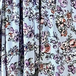 An adorable and super comfortable summer dress by Caution to the Wind. New without tags. The base color is blue and it's covered with ditzy flowers. It has an elastic waist adorned with a tie-up belt.