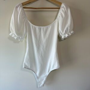 NWOT Blue Rain Ribbed Bodysuit with Ruffle Sleeve White Size Medium M