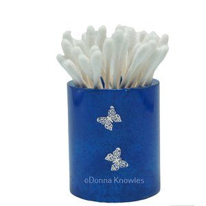 Original Art Blue Resin Container with mini filigree Butterfly's. Perfect container for q-tips, make-up brushes, etc. Not to be used as a candle holder.