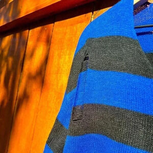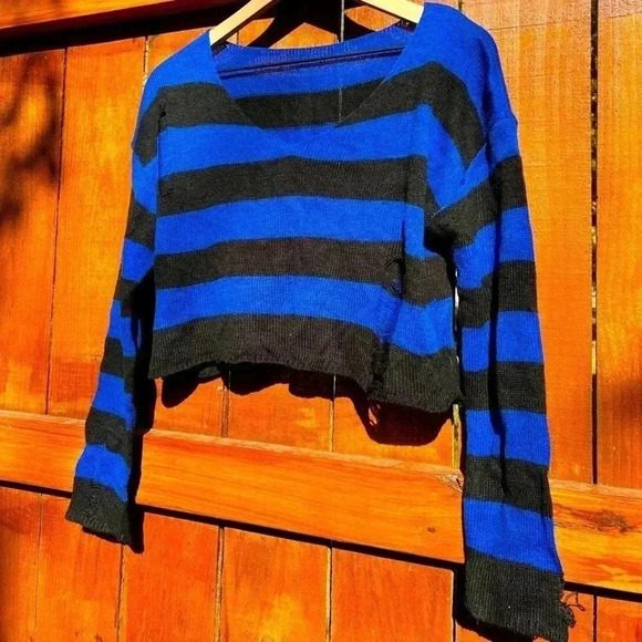 NWOT Blue and Black Distressed Crop Sweater Oversized - Size L