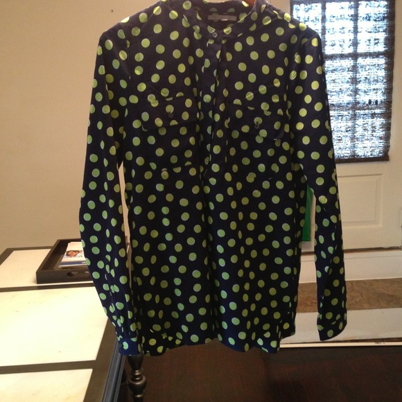 NWOT Blue and lime green polka dot tunic