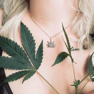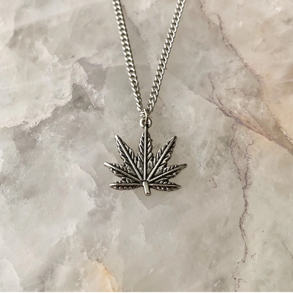 NWOT Blunted Objects Large One Hit Wonder Silver cannabis leaf pendant Necklace