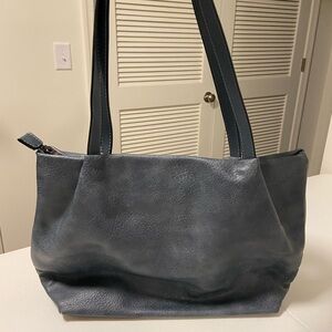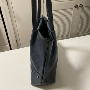 Blush shoulder bag. Purse is a beautiful darker shade of blue. Decorated with silver studs along the front side. Inside has lots of room with one open pocket & two zip pockets. The one zip pocket kind of forms another open pocket as shown in images. Purse zips closed. In like-new condition! Smoke free home!
