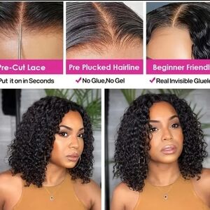 NWOT Bob Human Hair Lace Front Wig - Glueless, Pre-Plucked, Deep Curly, Natural