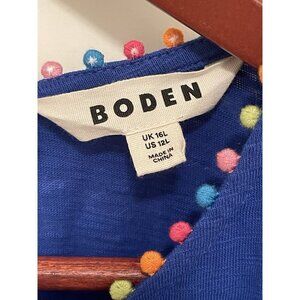 NWOT Boden Ali Pom Sleeve Dress Knee Length Women’s Sz US 12L Blue Short Sleeve