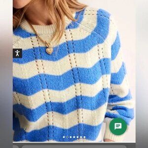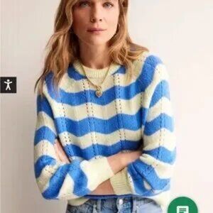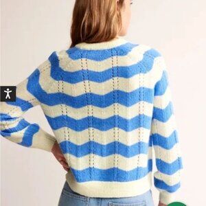 NWOT Boden Blue and Warm Ivory Fluffy Wave Sweater Size L