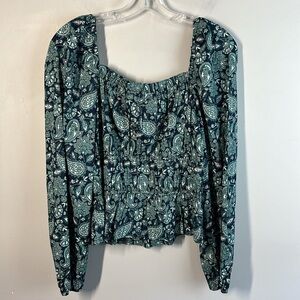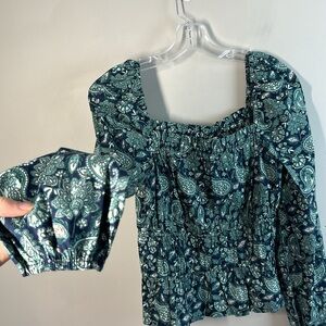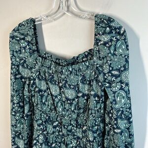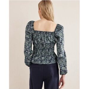 NWOT Boden Ruched Waist Peplum Long Sleeve Cotton Deep Sea Paisley Size 8