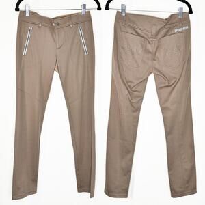 Bogner Khaki Tan Neutral Mid Rise Gele Embroidered Pocket Straight Slim Active Golf Pants
