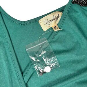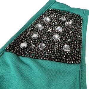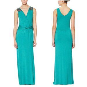 NWOT Boho Beaded Maxi Dress Sz.M Green Teal Sleeveless Event Festival Summer