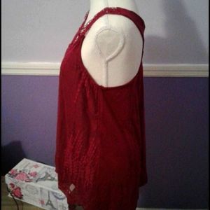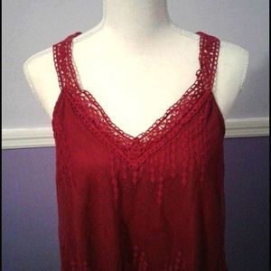 NWOT Boho Romantic Burgundy Embroidered Laced Overlay Babydoll Top