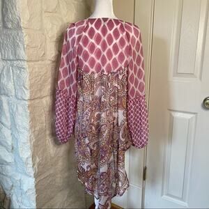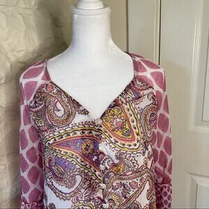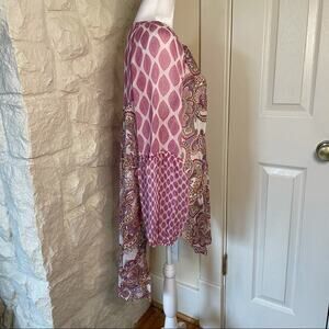 Beautiful pink polka dot and paisley mix sheer Boho High Low Blouse