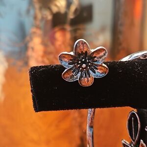 NWOT Stunning Boho silver toned ear cuff with roses and rose stud earrings.