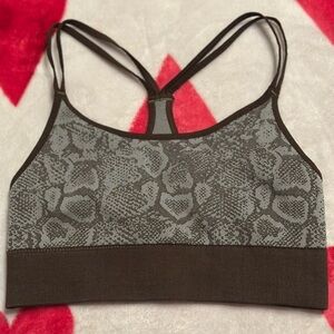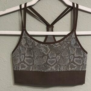 NWOT Bombshell Sportswear Sz XS Brown Snakeskin Sports Bra Racerback ~