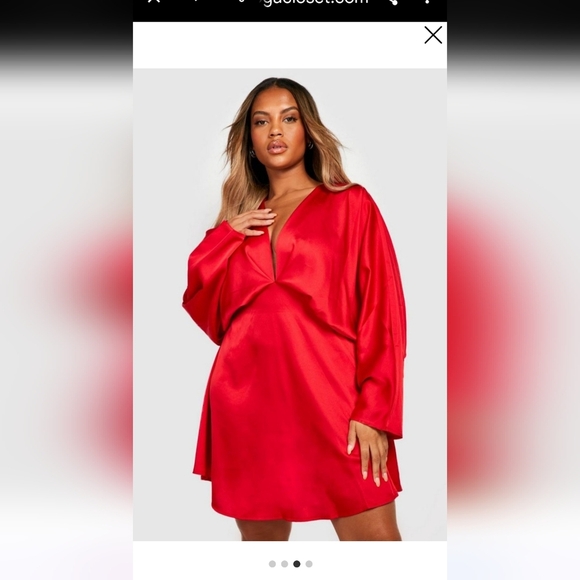🍁🍂NWOT Boohoo Plus Satin Batwing Skater Dress Size 18