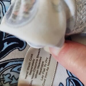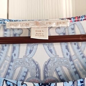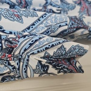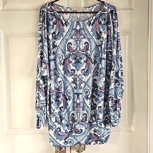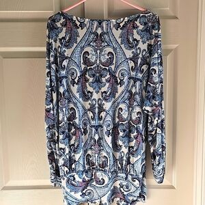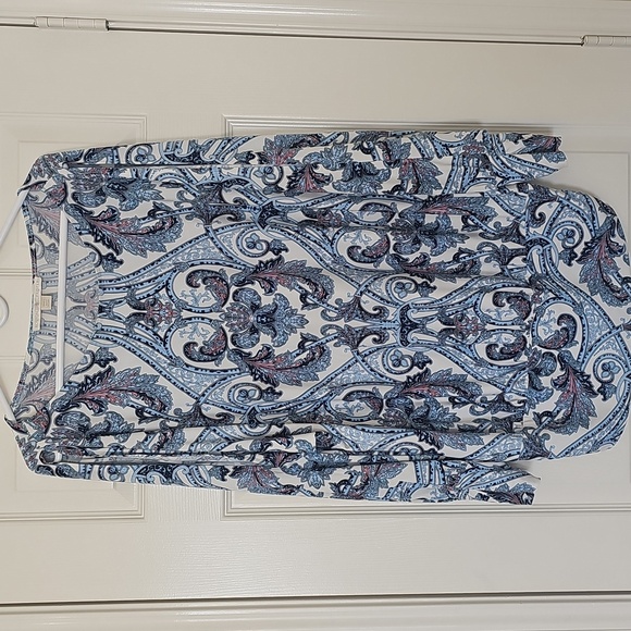 NWOT Boston Proper Paisley Long Sleeve Cold Shoulder Ruched Blouse. LARGE. Blue