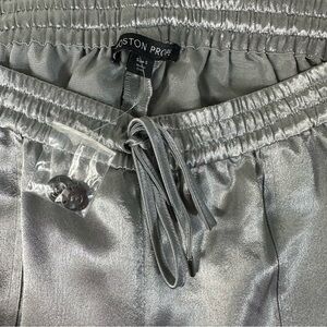 NWOT Boston Proper Silver Elastic Waist Pull-on Pants Straight leg Cargo Pockets